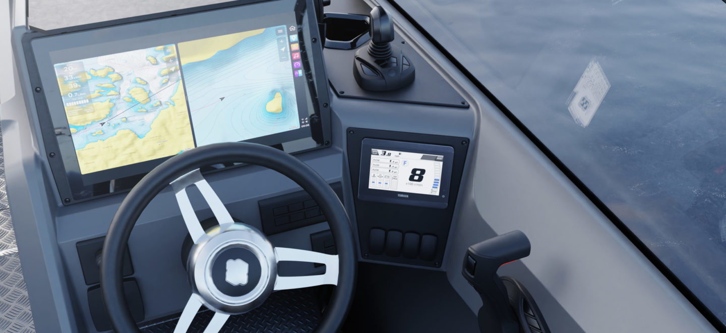 Midtpunkt i førerkonsollen er den store oppdaterte 16″ Buster Q Smart Display, et omfattende infotainmentsystem som inneholder Navionics elektroniske kart, radio, gjeldende værinformasjon og båtens instrumenter. En praktisk funksjon er at skjermen kan deles, noe som gjør den mulig å se kart i to størrelser samtidig. Dette lar sjåføren ta kursen på det ene kartet og zoome inn på detaljer på det andre. Buster SuperMagnum kan også utstyres med en ekstra 10″ Buster Q Smart Display for passasjerkonsollen, slik at passasjerene kan hjelpe til med å navigere og kontrollere musikken uten at sjåføren trenger å bli distrahert. Alle båtdata og loggboken kan synkroniseres til en mobil enhet via Buster-appen, uten å være i nærheten av båten.