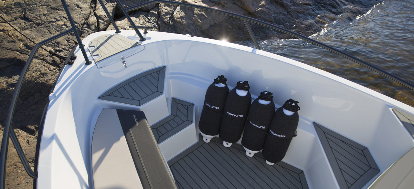 I Finnmaster R-seriens modeller har vi pakket alt det viktig som kreves for en perfekt dag på sjøen. Med smarte oppbevaringsplasser kan du enkelt få med deg alt du trenger for en skjærgårdstur. Modellene i Finnmaster R-serien er framfor alt bekvemme og fulle av smarte detaljer. Dekket på samtlige båter er for eksempel utformet slik at du lett skal kunne ta deg opp i og ut av båten. Dessuten finnes det bekvemme sitteplasser i forenden og i akterut, noe som garanterer at du og dine venner får en bekvem reise – uansett vær.