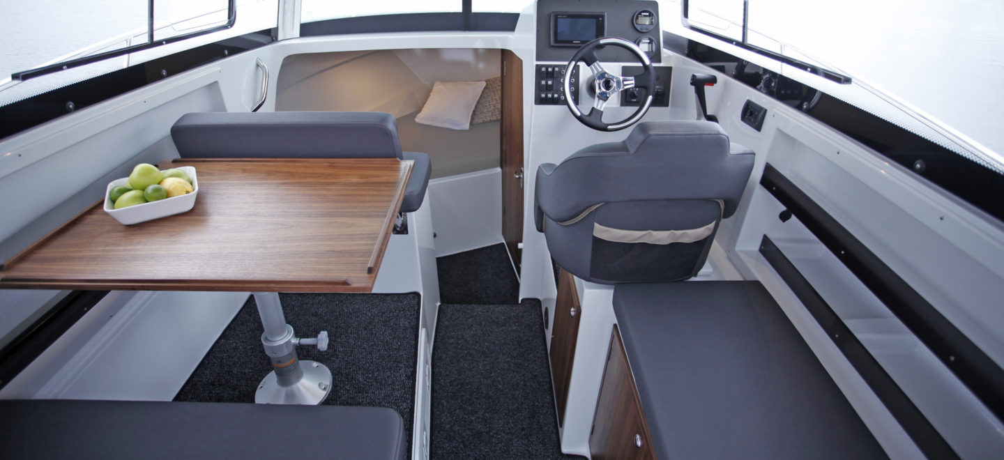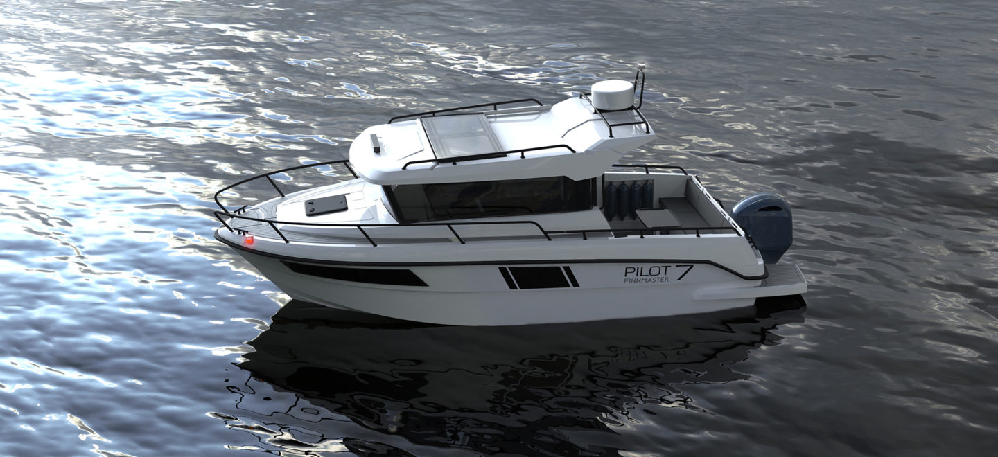 Finnmaster Pilot 7 er en multifunksjonell båt for all slags vær og er en fin båt for familien, eller for eksempel en gruppe fiskere. I tillegg til en god kjørefølelse har båten omfattende standardutstyr og allsidige ekstrautstyr. Den romslige førerkabinen i denne båten har en god ståhøyde, et stort soltak og seter for fem personer. Et godt utstyrt pantry, et koselig sted å spise med teakbord og soveplasser til fire gjør det også mulig å overnatte i båten. Det separate toalettet er til og med utstyrt med et elektrisk spyletoalett som er sjeldent i denne størrelsesklassen. I tillegg til dette har båten en stor akterdekk som gir et komfortabelt miljø for flere personer, hvor du kan sitte ned å spise eller prøve fiskelykken.