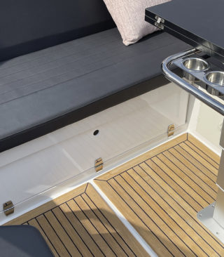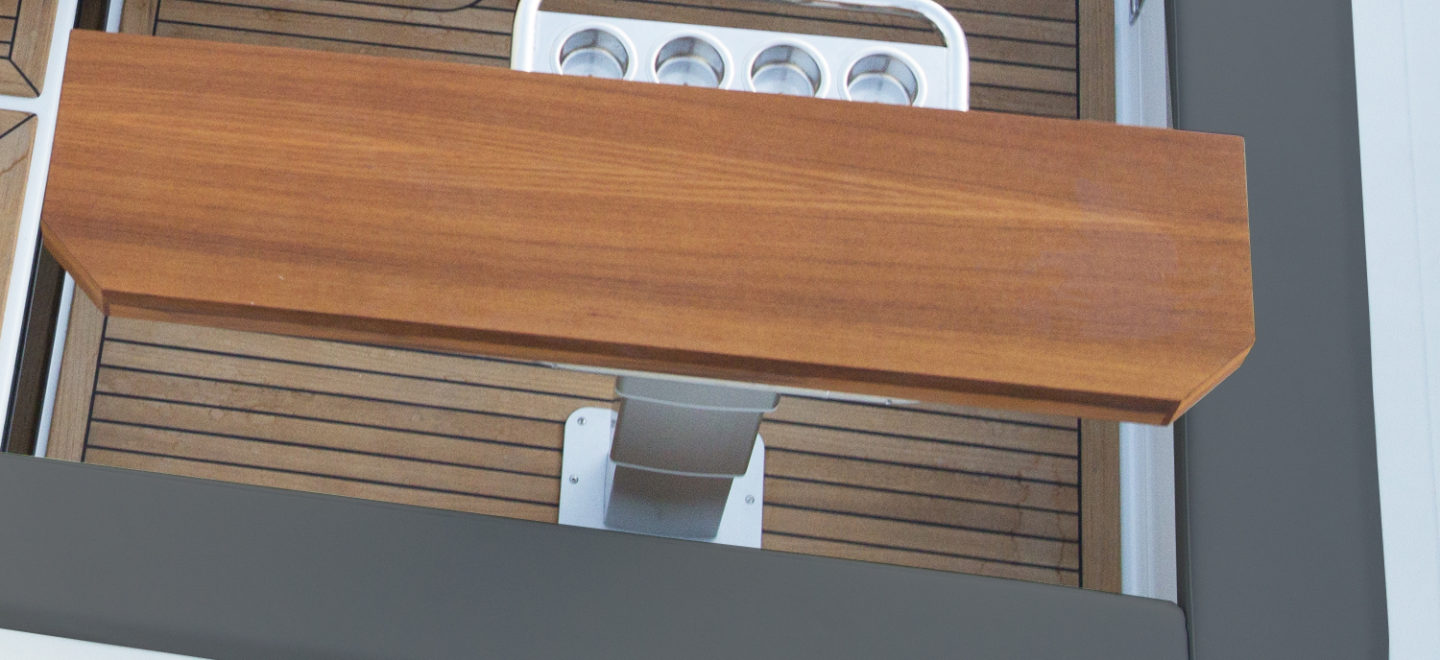 - Teak på cockpitdørken, fordekk og trappetrinn