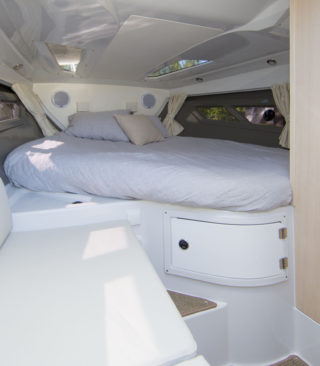 SEND PRISFORESPØRSELAv og til skal man ikke behøve å kompromisse. Når man vil ha en sportslig, men samtidig bekvem båt så skal man få det. Derfor valgte vi ikke bort noe da vi skapte T-seriens stolthet – T8. I denne unike båtmodellen finner du igjen alle de smarte løsninger som er vår signatur. Her har vi ganske enkelt bare brukt de beste materialene og ikke kompromisset med noe. Denne allsidige day-cruiseren gjør at du kan gå fra å ha en middag med hele familien til hurtig og smidig å forvandle spiseplassen til en av havnens lekreste soldekk. Når solen så går ned kan hele familien tilbringe natten i den store kahytten som er utstyrt med en separat toalettenhet.