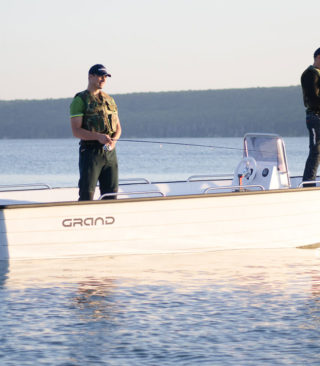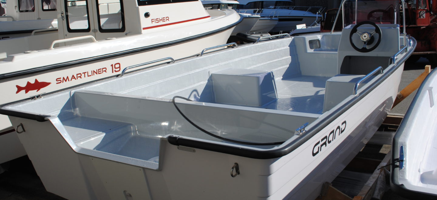 Grand 19 er en klassisk åpen glassfiberbåt. Båten er solid laget og har et godt skrog med mye bæreevne. Den har et stort selvlensende dekk og leveres standard med sidemontert konsoll. En meget god allround bruksbåt som egner seg såvel som hyttebåt eller til arbeid og fiske.